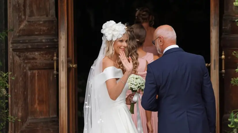 VENEZIA, 27 AGO - Ha percorso la lunga navata della Chiesa di San Zaccaria, a Venezia, con passo sicuro ma visibilmente emozionata al braccio del padre Roberto per dire sì a Matteo Giunta. Federica Pellegrini, ha sposato nel pomeriggio - con 45 minuti di ritardo - il suo allenatore nel corso di una cerimonia religiosa blindatissima, officiata dal suo ex parroco di Spinea, don Antonio Genovese. La chiesa era letteralmente ricoperta da ceste di rose a grappolo bianche ingentilite da tocchi di verde.