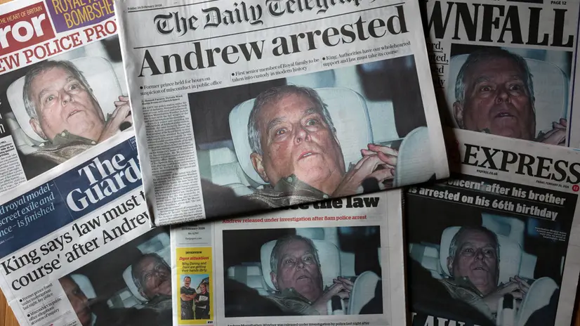 LONDRA, 20 FEB - E' l'immagine del viso dell'ex principe Andrea con l'espressione stravolta, dopo il rilascio seguito ieri sera al fermo di 12 ore cui il fratello di re Carlo III è stato sottoposto dalla polizia britannica che lo indaga nell'ambito in relazioni ai rapporti con il defunto finanziere pedofilo americano Jeffrey Epstein, a dominare oggi tutte le prime pagine dei giornali del Regno: uniti, dalla stampa più autorevole a quella più sensazionalista, a sottolineare l'arresto del terzogenito di Elisabetta II come un evento sismico di portata storica, a puntare il dito contro di lui - tuttora sulla carte ottavo per diritto di sangue nella linea di successione alla corona - e a proiettare ombre allarmanti sullo stesso futuro della monarchia. Fra i tabloid spicca il titolo irridente del Sun sotto la foto di Andrew Mountbatten-Windsor colto dai flash con gli occhi sbarrati mentre rientra a casa dopo l'arresto nel giorno del 66esimo compleanno e il rilascio: "Ora suda". Un riferimento all'improbabile alibi che l'ex duca di York aveva tirato fuori - sostenendo d'aver sofferto in passato di una sindrome che gli avrebbe impedito di sudare, contratta ai tempi della sua missione di guerra nel conflitto con l'Argentina per le isole Falkland-Malvinas - durante un'intervista-boomerang alla Bbc del 2019 per contestare le accuse di Virginia Giuffre, una delle vittime del giro di giovani sfruttate da Epstein e da Ghislaine Maxwell a beneficio proprio o di amici ricchi e potenti, che denunciava d'essere stata indotta ad avere rapporti sessuali con lui a 17 anni almeno tre volte. E ricordava come Andrea "sudasse copiosamente". Molti giornali, dal Guardian al Mail puntano invece sulle parole con cui re Carlo sembra aver preso definitivamente le distanze dal fratello, limitandosi a sottolineare dopo il fermo che "la legge deve fare il suo corso". Parole che non impediscono peraltro ad alcuni commentatori di evocare gli imbarazzi e i rischi che il sovrano 77enne ha ancora di fronte, mentre le indagini potrebbero far emergere ulteriori dettagli sulle coperture garantite in passato dalla famiglia reale al reprobo. Imbarazzi che secondo qualcuno potrebbero suggerire prima o poi a Carlo un passo indietro a beneficio del suo primogenito ed erede al trono William, presentato da una parte dell'establishment come inflessibile sul destino di Andrea: almeno negli ultimi tempi.