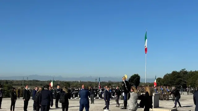 REDIPUGLIA, 04 NOV - Il presidente del Senato, Ignazio La Russa, in rappresentanza del presidente della Repubblica, è giunto al Sacrario militare di Redipuglia (Gorizia) in occasione delle celebrazioni del 4 novembre, Giorno dell'unità nazionale e Giornata delle forze armate. Ad accoglierlo alla base del monumento, la resa degli onori. La Russa è accompagnato dal ministro per i Rapporti con il Parlamento, Luca Ciriani, in rappresentanza del governo, e dal generale di corpo d'armata, Maurizio Riccò, delegato dal capo di Stato maggiore dell'Esercito come massima autorità militare presente alla cerimonia. Il presidente del Senato ha quindi percorso la via eroica del Sacrario militare fino al sacello del Duca d'Aosta, dove è stata deposta una corona d'alloro ed è stato osservato un minuto di silenzio. Il Sacrario di Redipuglia custodisce le spoglie di 100mila caduti nella Grande guerra. Prima dell'arrivo del presidente del Senato, hanno fatto il loro ingresso i medaglieri nazionali e i labari delle associazioni combattentistiche, d'arma e dei corpi logistici e i labari della Regione Friuli Venezia Giulia e dei Comuni. Alla cerimonia di resa degli onori sono rappresentate tutte le forze armate. La Russa ha quindi salutato gli alunni delle scuole intonando con loro l'Inno di Mameli e salutato le autorità presenti. Il presidente del Senato si è poi avvicinato alla partigiana medaglia d'oro al valor militare, 101 anni, Paola Del Din: "La posso abbracciare?", ha chiesto, salutandola.