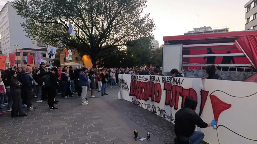 VENEZIA, 02 OTT - Manifestazioni e iniziative per Gaza hanno preceduto, a Venezia e sulla terraferma, la giornata di sciopero di venerdì 3 ottobre durante la quale si terranno due cortei con l'obiettivo di bloccare il Ponte della libertà. A Venezia centinaia di persone si sono radunate nei pressi del monumento dalla Partigiana, in riva dei Sette Martiri, nel sestiere di Castello, per manifestare solidarietà alla Global Sumud Flotilla, i cui attivisti sono stati abbordati e arrestati la notte scorsa dalla marina militare di Israele, mentre erano in navigazione verso la costa di Gaza. Molti i giovani, in gran parte studenti, ma anche adulti e militanti dell'Anpi e Rifondazione Comunista, con striscioni e bandiere, che hanno risposto all'appello lanciato dal Cso Morion. Il corteo poi si è mosso per raggiungere il presidio del personale sanitario per Gaza, davanti all'ospedale civile. In centinaia si sono radunati anche a Mestre, in piazzetta Coin, per un'iniziativa convocata dal centro sociale Rivolta. "Qualcosa lo possiamo fare anche per chi non vive direttamente a fianco a noi. Checché ne dica il nostro governo non sono mobilitazioni inutili, ma qualcosa di concreto", affermano gli organizzatori. I manifestanti si sono poi mossi in corteo (mille i partecipanti dichiarati) per raggiungere il municipio in via Palazzo. Qui è stata posizionata una scala a pioli, che ha permesso a un manifestante di appendere una bandiera palestinese al balcone del palazzo. Contemporaneamente gli scout di Mestre dell'Agesci hanno tenuto una veglia per la pace. Alla fiaccolata, partita dal Duomo di San Lorenzo e conclusasi all'interno della Chiesa di Santa Maria immacolata di Lourdes, a Mestre, hanno partecipato un centinaio di persone. Il ricavato dell'iniziativa è stato donato all'associazione "Una scuola tenda per Gaza".