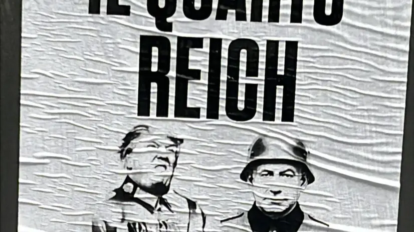 Manifesti con Trump, Netanyahu, Meloni e Salvini 'Quarto Reich'