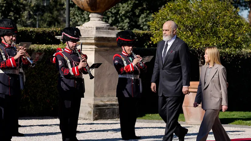 ROMA, 13 NOV - La presidente del Consiglio Giorgia Meloni ha accolto il primo ministro albanese Edi Rama a Villa Doria Pamphilj, dove si tiene il primo vertice intergovernativo Italia-Albania. I due capi di governo si sono salutati con un abbraccio, prima di passare in rassegna il reparto d'onore dei Granatieri di Sardegna. Poi, tenendosi abbracciati, Meloni e Rama sono entrati nel Casino del Bel Respiro, dove la giornata si aprirà con il colloquio bilaterale fra i due leader. Poi seguiranno la cerimonia di firma dell'accordo intergovernativo e la sessione plenaria e dalla colazione di lavoro a cui partecipano i ministri Antonio Tajani (Esteri), Matteo Piantedosi (Interno), Carlo Nordio (Giustizia), Guido Crosetto (Difesa), Gilberto Pichetto Fratin (Ambiente), Alessandro Giuli (Cultura), Orazio Schillaci (Salute), Nello Musumeci (Sud), e i sottosegretari Federico Freni (Economia) e Tullio Ferrante (Infrastrutture). Attorno alle 14 è prevista la cerimonia di scambio delle intese, a cui saranno presenti, oltre ai ministri, i vertici delle società interessate (Cdp, Simest, Sace, Leonardo) e della Protezione civile. Infine, Meloni e Rama terranno dichiarazioni congiunte alla stampa.