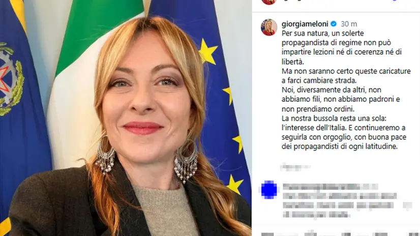 Meloni, 'propagandista di regime non può dare lezioni, non abbiamo padroni'