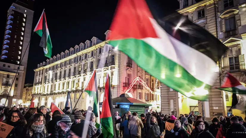 TORINO, 11 GEN - In piazza Castello a Torino, dove si conclude oggi il percorso piemontese della torcia dei Giochi invernali Milano Cortina 2026, si sono radunati gruppi di manifestanti. Su uno striscione e su alcuni cartelli si legge: "Fuori Israele dalle Olimpiadi", su altri: "Complice di genocidio", "No sport Washing", "Show Israel the Red Card", "Il genocidio non è una specialità olimpica", "Israele viola la tregua olimpica" e sono presenti bandiere della Palestina. Altri manifestanti espongono la bandiera del Venezuela, con la scritta: "Maduro libero". I manifestanti sfilano tra la gente in piazza per l'arrivo della Fiamma.