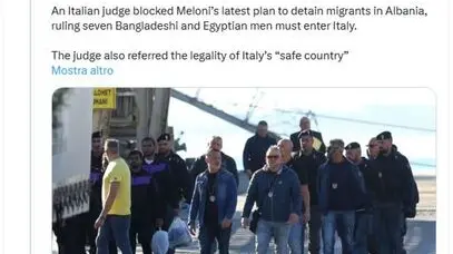 ROMA, 12 NOV - "Questi giudici devono andarsene" (These judges need to go). Così Elon Musk su X commenta un post di un utente che riporta la notizia della sospensione della convalida del trattenimento per sette migranti decisa dalla sezione immigrazione del Tribunale di Roma che si è anche rimesso alla Corte Ue.