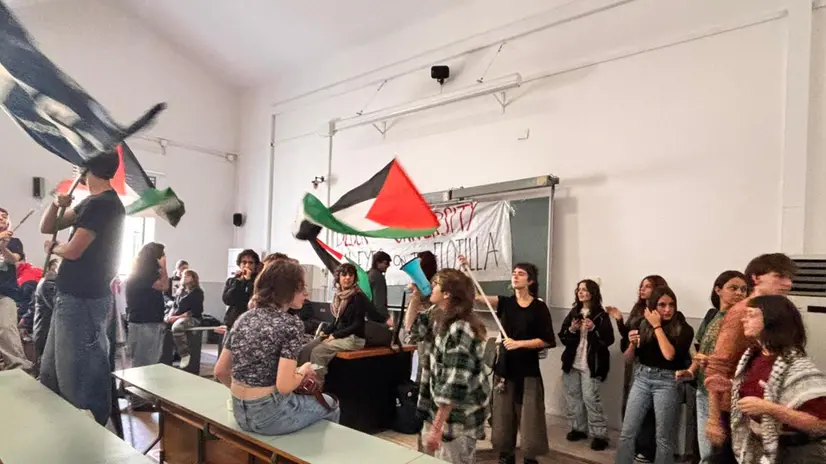 BARI, 02 OTT - Hanno occupato un'aula al secondo piano del palazzo Ateneo gli studenti dell'università Aldo Moro di Bari, riuniti in alcune sigle fra le quali Udu e Cambiare Rotta, per protestare contro il blocco delle imbarcazioni della Global Sumud Flotilla e per chiedere all'università di interrompere immediatamente qualunque accordo con Israele. Nell'aula gli studenti inneggiano a Gaza e sulla lavagna hanno scritto "Block the university, all eyes on the Flotilla". In tanti issano bandiere palestinesi, alcuni indossano la kefiah, altri gridano lo slogan "blocchiamo tutto" invitando a una massiccia partecipazione allo sciopero generale proclamato per il 3 ottobre. "Le prese di posizione fin qui fatte da UniBa per noi non sono sufficienti - spiega la studentessa Rosangela Pavone -. C'è stata una presa di posizione da parte dell'ex rettore Stefano Bronzini, ma comunque timida. E' stato deciso di bloccare solo alcuni accordi con Israele, non ci accontentiamo. E' necessario che la lotta continui fino a quanto tutte le intese non saranno sospese".