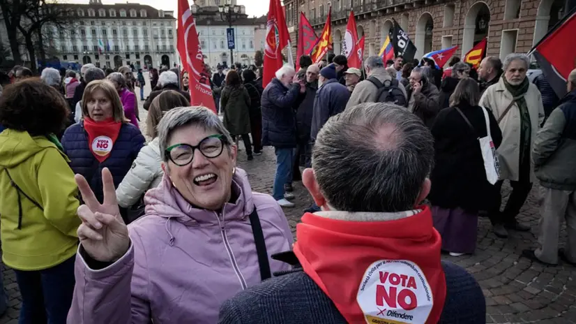 TORINO, 23 MAR - Il "no" al referendum costituzionale sulla giustizia è sceso in strada a Torino nel tardo pomeriggio con una manifestazione indetta da Potere al popolo e dal Partito della Rifondazione comunista. Oltre centocinquanta persone si sono ritrovate in piazza Castello, di fronte alla Prefettura, con bandiere anche di Usb, quella arcobaleno della Pace, qualche collettivo universitario, come il Cua, e bandiere della Palestina e di Cuba. Al centro hanno steso uno striscione con la scritta: "Meloni: dimissioni!", firmato "Comitato No Sociale", mentre sono stati pronunciati slogan analoghi contro la premier. Presenti anche rappresentanti del Pd, tra cui il segretario regionale del partito, Domenico Rossi, e la capogruppo in Regione, Gianna Pentenero, con delle bandiere. Una delle bandiere è stata poi strappata da alcuni militanti di Potere al popolo, che per breve tempo hanno scandito: "Fuori il Pd dal presidio".
