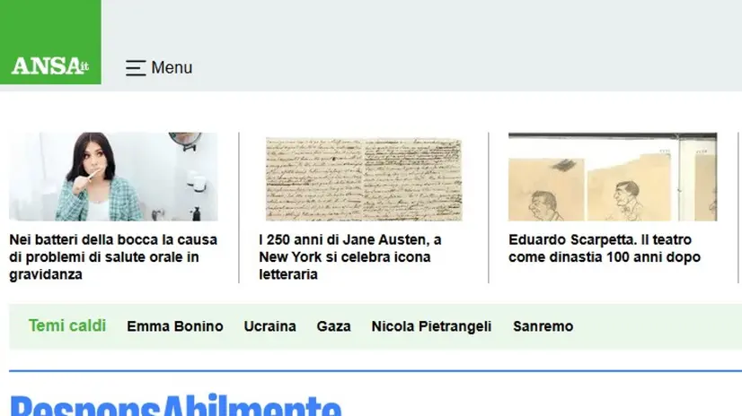 TORINO, 01 DIC - Si chiama ResponsAbilmente il nuovo canale ANSA, il primo in Italia dedicato esclusivamente all'inclusione, alla disabilità e alla responsabilità sociale. Punta a rendere accessibili le principali notizie del giorno. Realizzato dalla redazione di Roma con il contributo di tutte le redazioni d'Italia e del mondo dell'agenzia, il portale è stato presentato in occasione della terza edizione del Premio Giornalistico 'Paolo Osiride Ferrero' 2025 presso il Museo Regionale di Scienze Naturali di Torino. 'Dopo aver conosciuto Cpd (la Consulta per le persone in difficoltà), ho pensato che non potevamo non dare spazio a questi temi. Il portale è il risultato dell'impegno che abbiamo messo in questi anni', ha spiegato il direttore Luigi Contu. 'Grazie a Cpd per il lavoro che fa e grazie all'ANSA per aver aperto il portale ResponsAbilmente: è importante un'informazione corretta sulla disabilità, parlare del linguaggio. Bisogna dare una risposta ai bisogni delle persone', ha detto in un video la ministra per la Disabilità Alessandra Locatelli.