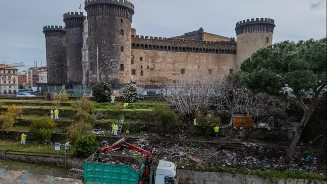 NAPOLI, 27 FEB - Intervento di pulizia e recupero del verde sugli storici spalti del Maschio Angioino a Napoli dove negli anni, nascosti da alte siepi e vegetazione incolta, avevano anche trovato rifugio alcuni homeless che ai margini dei giardinetti avevano allestito delle baracche di lamiera servendosi di cani per tenere alla larga ospiti indesiderati. Ai piedi del famoso castello di piazza del Municipio, facendosi largo tra grovigli di vegetazione, gli operatori hanno rimosso tonnellate di rifiuti con l'ausilio di un mezzo attrezzato di braccio meccanico. All'operazione, su un area di oltre 500 metri quadri, hanno partecipato oltre 20 uomini di Napoli Servizi affiancati da perdonale Asia, Anm, servizi sociali, Nucleo investigativo Ambientale Emergenze Sociali della polizia Municipale e servizio veterinario Asl, che hanno lavorato dalle prime ore dell'alba per restituire lo spazio verde alla città ed ai turisti. Con i mezzi di Asia sono stati raccolti altri 50 quintali di rifiuti e 20 quintali di ingombranti. Recuperato perfino un motoveicolo abbandonato e senza targa. Infine, è stata rimossa una porzione di recinzione in new jersey in cemento e metallo, del vecchio cantiere della metropolitana, ripristinando una parte di marciapiede. Due senza fissa dimora che si erano stabiliti nell'area si sono allontanati e sono stati presi in cura dai Servizi Sociali. È stato quindi demolito un vero e proprio accampamento costruito con lamiere e reti metalliche all'interno del quale sono stati ritrovati indumenti abbandonati, materassi, valigie e oggetti vari. Alla fine delle operazioni l'intera area è stata sanificata.