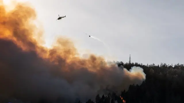 BOLZANO, 11 APR - In val Venosta, in Alto Adige, da ieri bruciano 100 ettari di bosco. 400 vigili del fuoco e cinque elicotteri stanno lottando contro le fiamme in una zona impervia, di difficile accesso. Una grande sfida è l'approvvigionamento di acqua per lo spegnimento. Il fotografo-pompiere David Ceska ha immortalato scene drammatiche, come un cerbiatto spaventato e in difficoltà tra le ceneri, gli elicotteri che sorvolano a bassa quota gli alberi in fiamme e i colleghi-pompieri che in un paesaggio apocalittico spengono i focolai. Il giovane meranese ha pubblicato gli scatti sulla sua pagina Facebook "Ceska David - Einsatzdokumentationen".