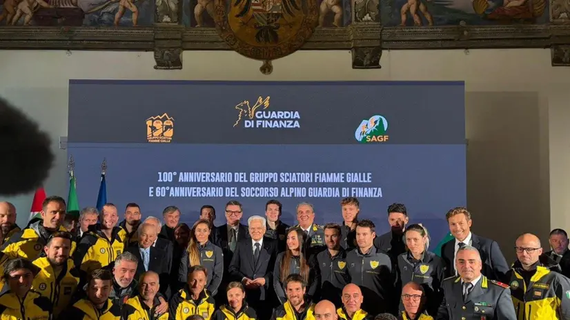 TRENTO, 28 OTT - Si è tenuta oggi a Trento, nel Castello del Buonconsiglio, la cerimonia congiunta organizzata dalla Guardia di Finanza per celebrare due traguardi importanti: il Centenario del Gruppo Sciatori Fiamme Gialle e il 60/o anniversario del Soccorso Alpino del Corpo. All'evento hanno partecipato anche il presidente della Repubblica, Sergio Mattarella, il ministro Giancarlo Giorgetti, il comandante generale della Guardia di finanza, Andrea De Gennaro, oltre ad altre personalità istituzionali ed ai presidenti delle due Province autonome di Trento e Bolzano, Maurizio Fugatti e Arno Kompatscher. Per l'occasione erano presenti campioni di ieri e di oggi del Gruppo Sciatori Fiamme Gialle - tra questi, Gustav Thoni, Piero Gros, Franco Nones, Sofia Goggia, Dorothea Wierer, Martina Valcepina, solo per citarne alcuni - e rappresentanti del Soccorso Alpino del Corpo (Sagf). Di grande effetto anche le immagini di cent'anni di podi e medaglie, di sessant'anni di operazioni, interventi e salvataggi ad opera di donne e uomini eccezionali. E poi le dirette voci dei protagonisti, con le interviste a Piero Gros e Sofia Goggia, dai cui racconti è emerso, forte più che mai, lo spirito di corpo, il sacrificio, la dedizione, la resilienza di chi non si arrende mai davanti alle difficoltà e alle sfide.