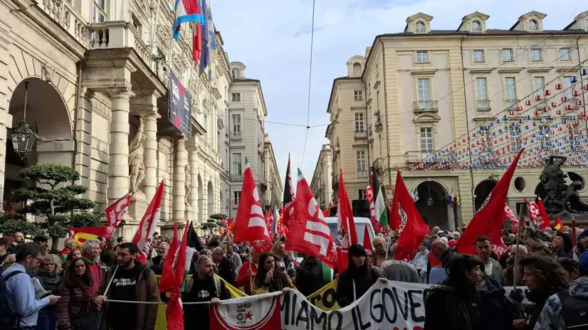 TORINO, 03 OTT - Giornata di mobilitazione pro Palestina a Torino. Migliaia di manifestanti si stanno radunando in diversi punti della città per i cortei indetti sotto lo slogan "Blocchiamo tutto", con l'obiettivo di avvicinarsi alle Ogr di corso Castelfidardo, area presidiata da un ingente schieramento dalle forze dell'ordine. Da piazza di Città muovono i sindacati di base e la Cgil per lo sciopero generale, insieme al coordinamento Torino per Gaza e agli universitari. Gli studenti delle scuole superiori si sono radunati in piazza Albarello, mentre altri gruppi pro Palestina si sono dati appuntamento in corso Vittorio Emanuele II, non lontano dall'area delle Ogr. Nelle Officine grandi riparazioni, nell'ambito dell'Italian Tech Week, è previsto il talk con Jeff Bezos, fondatore di Amazon, insieme a John Elkann e alla presidente della Commissione europea Ursula von der Leyen. Traffico in tilt in molte zone della città.