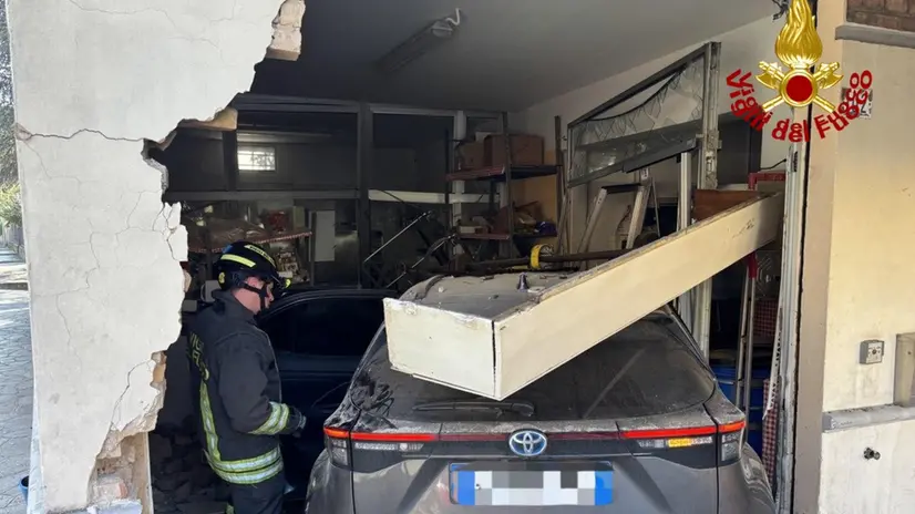 Scontro tra due auto a Modena, una vettura sfonda l'ingresso di un negozio