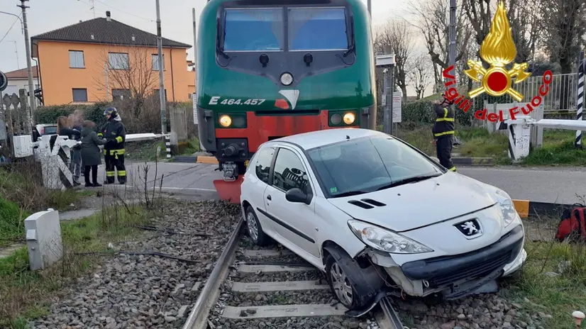 MILANO, 22 FEB - Uno scontro tra una vettura e un treno della linea Mortara-Rogoredo si è verificato nel pomeriggio intorno alle 17 all'ingresso del Comune di Abbiategrasso, nel Mianese. La vettura con all'interno due anziani, per cause in corso di accertamento, è stata speronata dal convoglio ferroviario a bordo del quale c'erano circa trecento passeggeri. Non si registrano feriti o persone coinvolte anche per la bassa velocità con cui il treno stava transitando. Sul posto i Vigili del fuoco di Abbiategrasso, Corbetta e della sede centrale di Milano che hanno provveduto a mettere in sicurezza l'area. Soltanto pochi minuti fa i trecento passeggeri del treno sono stati fatti scendere per andare alla vicina stazione di Abbiategrasso. La linea è ancora interrotta alla circolazione.