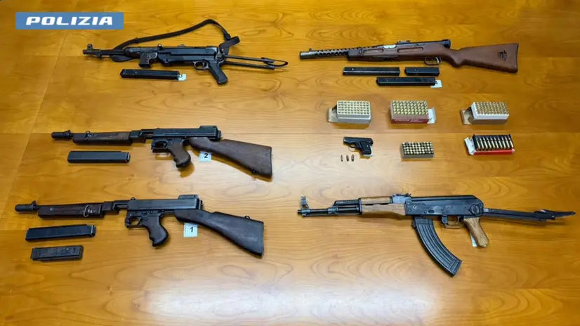 MILANO, 21 NOV - La Polizia di Stato a Garbagnate Milanese (Milano), ha arrestato due italiani di 41 e 49 anni, entrambi con precedenti, per detenzione e traffico di armi da guerra e comuni da sparo; il primo è stato anche denunciato per ricettazione in quanto trovato in possesso di un'arma provento di furto. I poliziotti del commissariato Legnano e Busto Arsizio, sono venuti a conoscenza di un incontro tra i due uomini, per la cessione di armi da guerra. Gli agenti hanno notato il 41enne uscire dalla propria abitazione, per andare all'incontro, a bordo di un furgone, con il 49enne, giunto a bordo di un'utilitaria; con le proprie auto, sono entrati in un complesso condominiale per poi uscire dopo pochi minuti e dirigersi in direzioni diverse. I poliziotti hanno seguito i due veicoli, riuscendo a intercettare il furgone, guidato dal 41enne, nei pressi di un centro commerciale a Garbagnate Milanese; all'interno sono state trovate due pistole mitragliatrici Thompson calibro 45, entrambe classificate come armi da guerra, una pistola mitragliatrice MP40 calibro 9, classificata come arma da guerra, un fucile Beretta modello Moschetto calibro 38 automatico, due calcioli per impugnatura a spalla e 33 cartucce calibro 9. Inoltre, in casa del 41enne è stato trovato un fucile d'assalto AK-47 di fabbricazione cinese, parti meccaniche e accessori per armi corte, oltre 120 cartucce di vario calibro e una pistola F.N calibro 6.35 risultata essere stata rubata in abitazione a Milano lo scorso dicembre. Gli agenti hanno poi perquisito l'abitazione del 49enne, dove hanno trovato 4.420 euro nascosti in un guanto da motociclista, altre banconote nel portafoglio, vari appunti con elenchi di armi, munizioni e relativi prezzi e 165 cartucce di vario calibro, custodite in un box Il materiale sequestrato, di rilevante potenzialità offensiva e in parte di provenienza estera, verrà sottoposto a perizia balistica per verificare eventuali collegamenti con episodi criminosi.