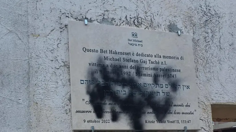 ROMA, 01 DIC - Scritte 'Monteverde antisionista e antifasicista' e 'Palestina Libera' sono apparse alla sinagoga in via Giuseppe Pianese a Roma e imbrattata con vernice nera la targa d'intitolazione. "All'indomani dell'ennesima manifestazione pro Pal, al tempio di Monteverde è stata profanata la targa di intitolazione - sottolinea Victor Fadlun, Presidente della Comunità Ebraica di Roma - Il tempio è dedicato a Micheal Stefano Gaj Tachè, un bambino di soli due anni assassinato dal terrorismo palestinese nel 1982 in un attacco al Tempio maggiore". Contro il gesto è stata espressa solidarietà bipartisan. "Le scritte comparse nella notte al tempio Beth Michael a Monteverde sono un gesto infame che ferisce la Comunità Ebraica e offende l'intera città", ha detto il sindaco di Roma Roberto Gualtieri. "Rivolgo alla Comunità Ebraica la vicinanza mia personale e del Senato della Repubblica per lo spregevole atto di antisemitismo avvenuto alla sinagoga Beth Michael nel quartiere Monteverde Vecchio di Roma", afferma sui social il presidente del Senato Ignazio La Russa.
