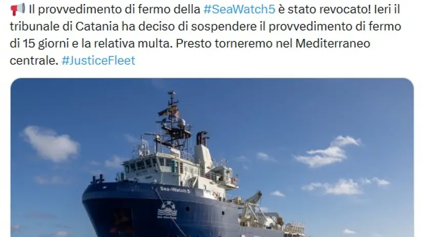 Sea Watch 5, 'Tribunale di Catania ha sospeso il fermo'