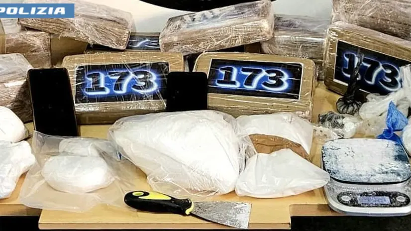 ROMA, 04 NOV - Oltre 36 chili di cocaina sono stati sequestrati a Roma dalla polizia in un laboratorio di spaccio "a conduzione familiare". A occuparsene erano un uomo e il suo giovane figlio che sono stati arrestati dagli agenti della squadra mobile, provvedimento che è stato poi convalidato dal gip su richiesta della procura. Al laboratorio i 'falchi' della VI° Sezione sono giunti seguendo il ragazzo, uscito dal locale con uno zaino sulle spalle: all'interno c'erano più di 10 chili di cocaina, confezionati sottovuoto in nove pacchi, mentre il padre è stato trovato in possesso di 1.300 euro in contanti La perquisizione è poi proseguita all'interno del magazzino, dove è stata scoperta una cassaforte contenente altri 26 chili di cocaina, sempre conservati sottovuoto. Come in un vero laboratorio "fai da te", sul tavolo, era poi cosparso tutto l'occorrente per il confezionamento e lo spaccio della droga. Nell'abitazione di famiglia, gli agenti hanno trovato altri 1.700 euro in contanti, ritenuti, come i primi, presumibile provento della loro attività illecita Nelle stesse ore, sempre i "falchi" della Squadra Mobile hanno arrestato, nei pressi della stazione Tiburtina, un cittadino filippino di 42 anni trovato in possesso di 50 grammi di shaboo, la potente metanfetamina nota come "droga dei filippini", un decimo di grammo della stessa è sufficiente per produrre effetti devastanti nell'assuntore. Per l'uomo sono scattate immediatamente le manette. Dopo la convalida dell'arresto nelle aule di Piazzale Clodio, è ora gravemente indiziato del reato di detenzione ai fini di spaccio di sostanze stupefacenti. L'autorità giudiziaria ha disposto nei suoi confronti la misura cautelare del divieto di dimora nel Comune di Roma.