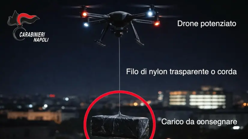NAPOLI, 03 APR - Un drone con un filo di nylon al quale era legata una busta contenente tre smartphone, 200 grammi di hashish e circa 4 di crack, destinato ai detenuti del carcere di Poggioreale è stato sequestrato dai Carabinieri a Napoli. Il velivolo è stato individuato nell'area che circonda il carcere, a ridosso del Centro Direzionale. Già diverse inchieste dei Carabinieri, coordinate dalla Dda di Napoli, hanno documentato un sistema di introduzione di cellulari e stupefacenti nelle carceri da parte della camorra attraverso i droni potenziati capaci di volare più in alto del normale e di trasportare carichi appesi con fili trasparenti o contenitori scuri. Tutti elementi funzionali a ridurre visibilità e tracciabilità operativa. Caratteristica comune a tutti i dispositivi è quella di aggirare le no-fly zone e superare limiti operativi ordinari. Determinanti per i clan che hanno intrapreso questo business hi-tech sono i piloti, i cosiddetti "dronisti" che con competenze specifiche rendono possibile la consegna del carico. Secondo quanto ricostruito nelle inchieste della Procura distrettuale e e dell'Arma, si tratta di un ruolo ben remunerato: in un caso si parla di compensi tra 700 e 800 euro per operazione, in altri di 3mila euro a viaggio, mentre in un'intercettazione un pilota avrebbe vantato guadagni fino a 10 mila euro al giorno. E Poggioreale e Secondigliano, in questa prospettiva, non sono soltanto luoghi in cui si registrano sequestri o rinvenimenti. Sono il punto in cui diventa visibile una trasformazione più ampia: uso di droni modificati, piloti specializzati e logistica flessibile raccontano come la camorra stia aggiornando i propri strumenti per superare distanza, muri e controlli, con un salto di qualità che merita attenzione.