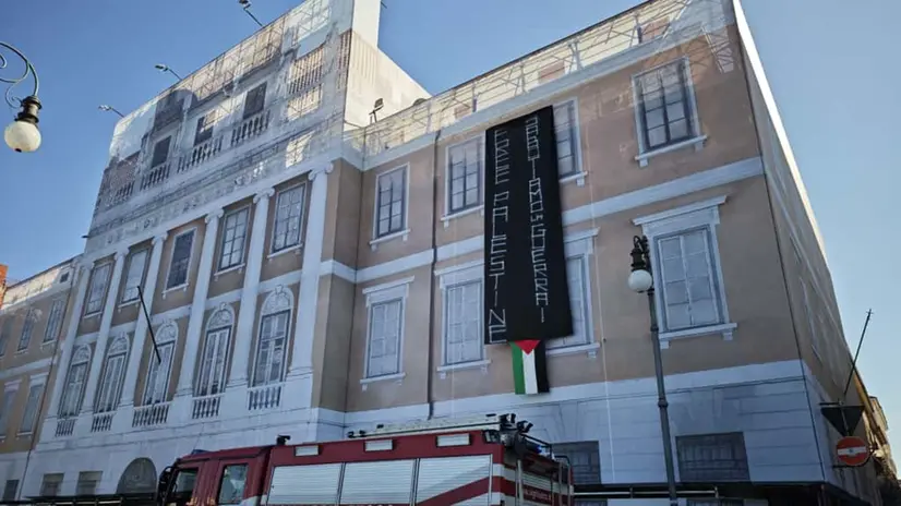Striscione 'Free Palestine' compare su palazzo storico Trieste