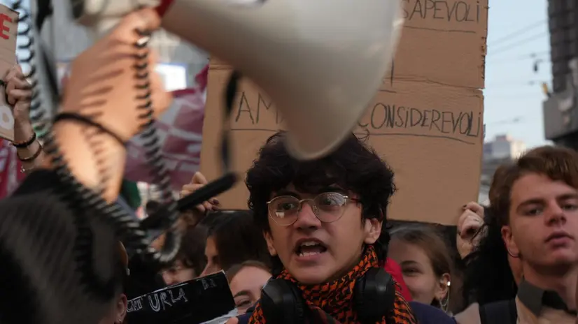 NAPOLI, 14 NOV - Espongono striscioni e urlano slogan contro 'genocidio, repressione e riarmo, gli studenti che sono scesi in piazza oggi a Napoli in un corteo partito da Piazza Garibaldi. La manifestazione rientra nelle iniziative del #Nomeloniday promosso in diverse piazze italiane. In marcia anche una bara con sopra un fiore e una croce a simboleggiare la morte della 'scuola pubblica, laica, antifascista'. Tra i temi della protesta la denuncia della situazione a Gaza ed il no alla 'militarizzazione' del sapere e la necessità di una inversione totale rispetto alle politiche sul clima.
