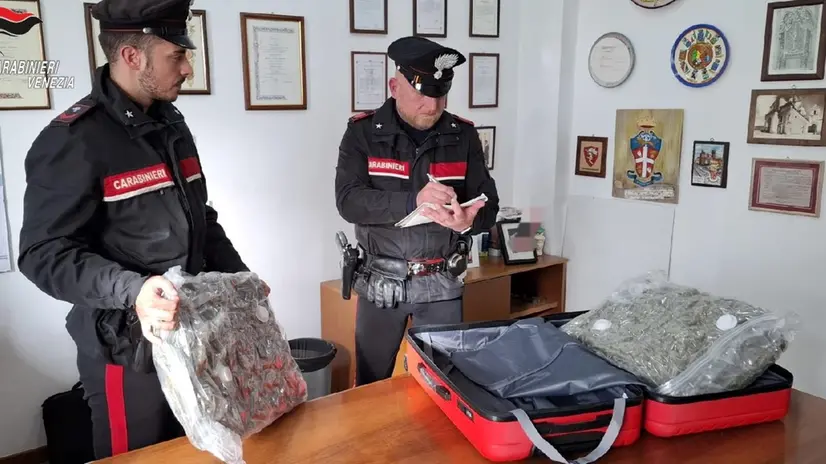 VENEZIA, 18 NOV - I carabinieri hanno arrestato nella notte del 16 novembre a Mestre (Venezia) un 33enne di origine straniera per detenzione ai fini di spaccio di sostanze stupefacenti. I militari durante un servizio antidroga hanno notato l'uomo camminare con circospezione, mentre trascinava un trolley. Al controllo il 33enne ha assunto un atteggiamento nervoso e alla richiesta su cosa contenesse il bagaglio ha risposto di non conoscere il contenuto né il codice di sblocco del lucchetto. I carabinieri, dopo essere riusciti ad aprire il trolley, hanno trovato due involucri di cellophane sottovuoto contenenti marijuana per un peso complessivo di 5,2 chili e un telefono cellulare. La sostanza, se immessa sul mercato, avrebbe fruttato oltre 40mila euro. L'uomo è stato condotto alla Casa circondariale Santa Maria Maggiore di Venezia.