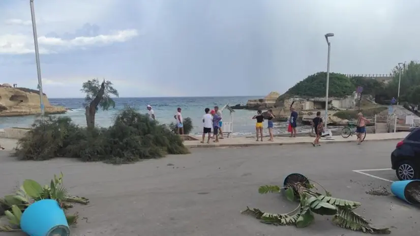 Tromba d'aria in Salento, bagnanti in fuga, alberi sradicati