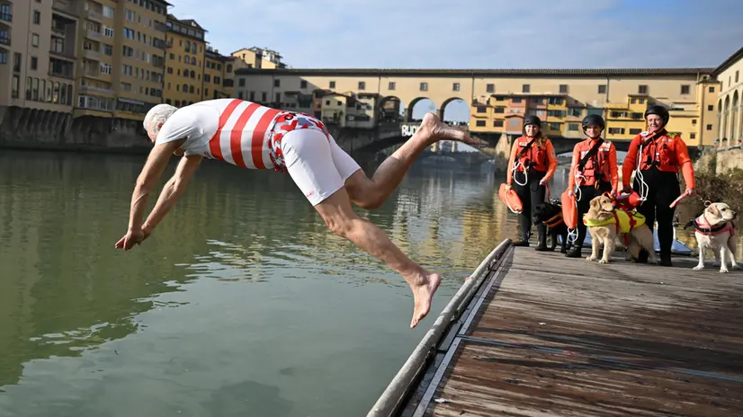 FIRENZE, 01 GEN - "Forza Toscana, un tuffo in Arno per augurarvi un magico 2026. Solidarietà e pace, ambiente e sport, lavoro e cultura… tante sfide davanti che possiamo vincere insieme. Io sono pronto a dare il massimo e voi?". Così il presidente della Toscana, Eugenio Giani, sui social commenta la foto che lo vede, anche quest'anno, tuffarsi dalla banchina dei Canottieri al Ponte Vecchio nell'Arno. Oggi in Toscana c'è sereno ma vige allerta gialla della protezione civile per ghiaccio e neve. Nei fondovalle la temperatura è andata sotto zero in alcune zone.