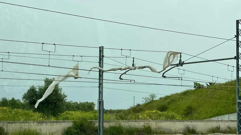 BARI, 13 APR - La linea ferroviaria che collega Bari Centrale all'Aeroporto di Bari-Palese è temporaneamente sospesa a causa di due grande teli che, trasportati dal forte vento, si sono incastrati nella linea di contatto. La società che gestisce quel tratto di linea ferroviaria, Ferrotramviaria, fa sapere che "per avverse condizioni meteo, la linea via Aerostazione sarà temporaneamente interrotta alla circolazione" e "durante tale periodo i treni normalmente instradati via Aerostazione saranno deviati sul percorso via Palese e verranno istituiti servizi automobilistici sostitutivi sulla tratta Europa-Palese-Macchie". I tecnici sono al lavoro per rimuovere i due grandi teli in cellophane, che potrebbero provenire dalle campagne circostanti, e ripristinare il collegamento nel più breve tempo possibile.