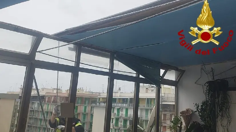 BARI, 13 APR - Decine di interventi dei vigili del fuoco nel Barese per il maltempo e il forte vento di scirocco che da stamattina soffia anche sulla città capoluogo. Gli interventi hanno riguardato cartelli pubblicitari e segnali pericolanti, rami spezzati, cornicioni pericolanti e tetti di verande volati via. Una ringhiera di un balcone pericolante è stata prontamente rimossa da un quinto piano grazie all'ausilio dell'autoscala ed è in fase di rimozione un abete di oltre 20 metri caduto sulla palazzina accanto. Non si segnalano fortunatamente a Bari fino a questo momento danni a persone.