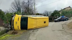 Scuolabus con 7 bambini a bordo si ribalta, paura ma nessun ferito