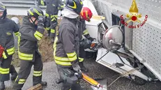 Camion si rovescia per evitare frontale e schiaccia furgone, un morto