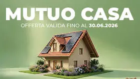 * Il mutuo è destinato a persone fisiche per l’acquisto di immobile ad uso residenziale in classe energetica B o superiore, per durate massime di 20 anni. L’importo del finanziamento non potrà superare l'80% del minore tra il valore dell'immobile accertato dal perito e il prezzo d'acquisto del bene e sarà garantito da ipoteca. Ai fini della concessione del finanziamento la parte mutuataria, l'eventuale parte datrice di ipoteca ed i loro aventi causa, sono obbligati ad assicurare ed a mantenere assicurati per un valore non inferiore a quello di stima della banca, contro i danni derivanti da incendio scoppio e caduta del fulmine, gli immobili assoggettati ad ipoteca per tutta la durata del contratto di mutuo. Offerta valida fino al 30/06/2026 salvo chiusura anticipata. L’accettazione del finanziamento è subordinata alla valutazione da parte della Banca del merito creditizio del richiedente.