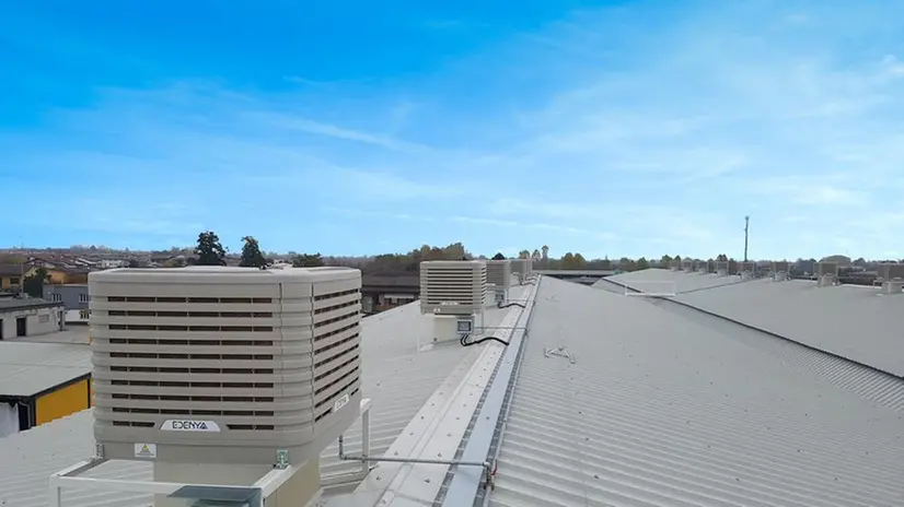 Grazie all’impianto di raffrescamento evaporativo sono state ricreate le condizioni per massimizzare lo scambio termico naturale aria-acqua e produrre una significativa portata d’aria fresca da immettere nei locali da climatizzare, garantendo la distribuzione mirata dell’aria in tutto l’ambiente.