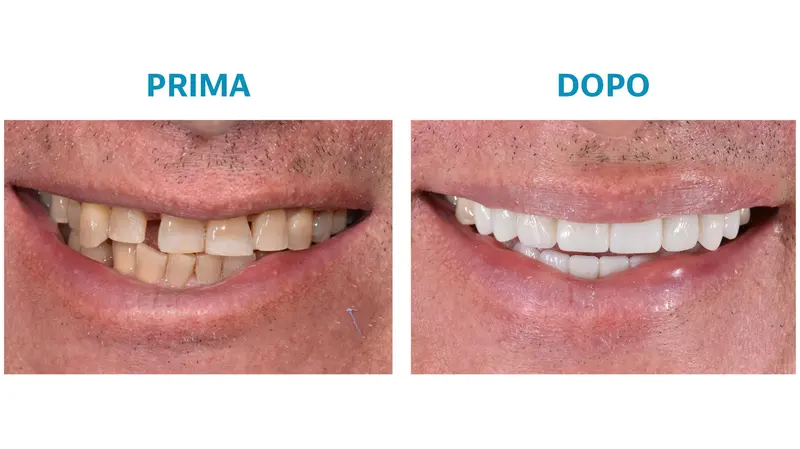 Riguarda un paziente uomo con un sorriso già bello in termini di forma e armonia ma con un colore tendente al giallo che gli creava disturbo. Con il protocollo di sbiancamento americano ha ottenuto lo stesso sorriso naturale, ma più luminoso e bianco, raggiungendo il colore Bl2.