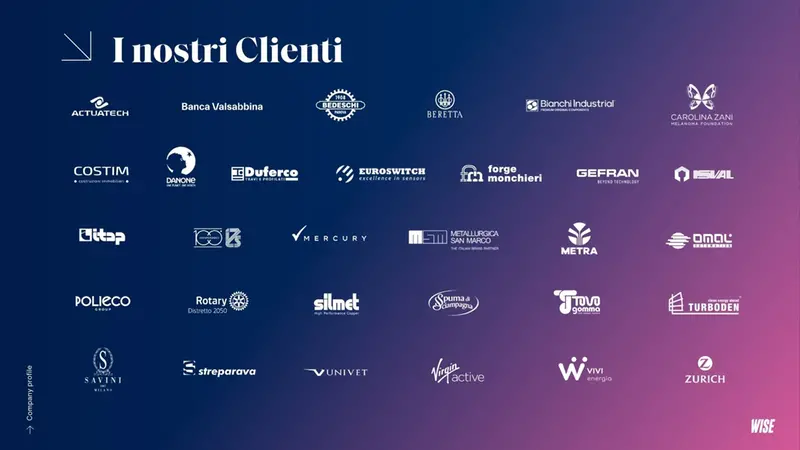 Ogni evento progettato da WISE Eventi è pensato per generare valore concreto, attivare connessioni strategiche e tradurre la visione del brand in un’esperienza coerente e misurabile. WISE Eventi è Business Unit di Gruppo WISE, agenzia di marketing e comunicazione integrata, che affianca le aziende in processi di co-design dedicati alla definizione di value proposition e strategie di business.