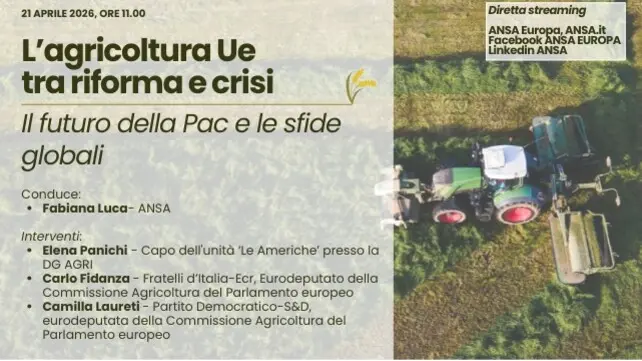 Il confronto si inserisce in una fase di forte incertezza legata alle interruzioni alla navigazione sullo Stretto di Hormuz mentre a Bruxelles il Parlamento europeo porta avanti l'iter sul prossimo quadro finanziario pluriennale, in cui si inquadra anche la Pac. A confrontarsi su sfide e opportunità saranno Elena Panichi, capo dell'unità "Le Americhe" della DG AGRI, insieme agli eurodeputati della commissione Agricoltura del Parlamento europeo, Carlo Fidanza (Fratelli d'Italia) e Camilla Laureti (Pd).