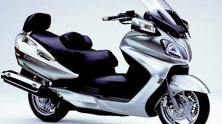 Otto anni di costante successo: lo scooterone Suzuki Burgman 650 è ancora oggi tra i preferiti per le sue caratteristiche a metà tra mezzo urbano e lussuosa moto da turismo. Cambio con variatore continuo (ma c'è anche la possibilità di variare sequenzialmente il rapporto), freni con ABS, manopole e sella riscaldabili per il massimo comfort: tutto fa pensare che Suzuki abbia pensato a questo scooter come a una seria alternativa alle grosse tourer su due ruote spesso ben più ingombranti e difficili da guidare.