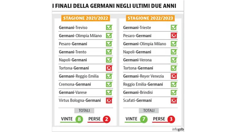 Nella primavera del 2022 (diciamo dal primo tratto di marzo, secondo il calendario ancora inverno, in avanti) la Germani ottiene otto vittorie e incassa soltanto due sconfitte.