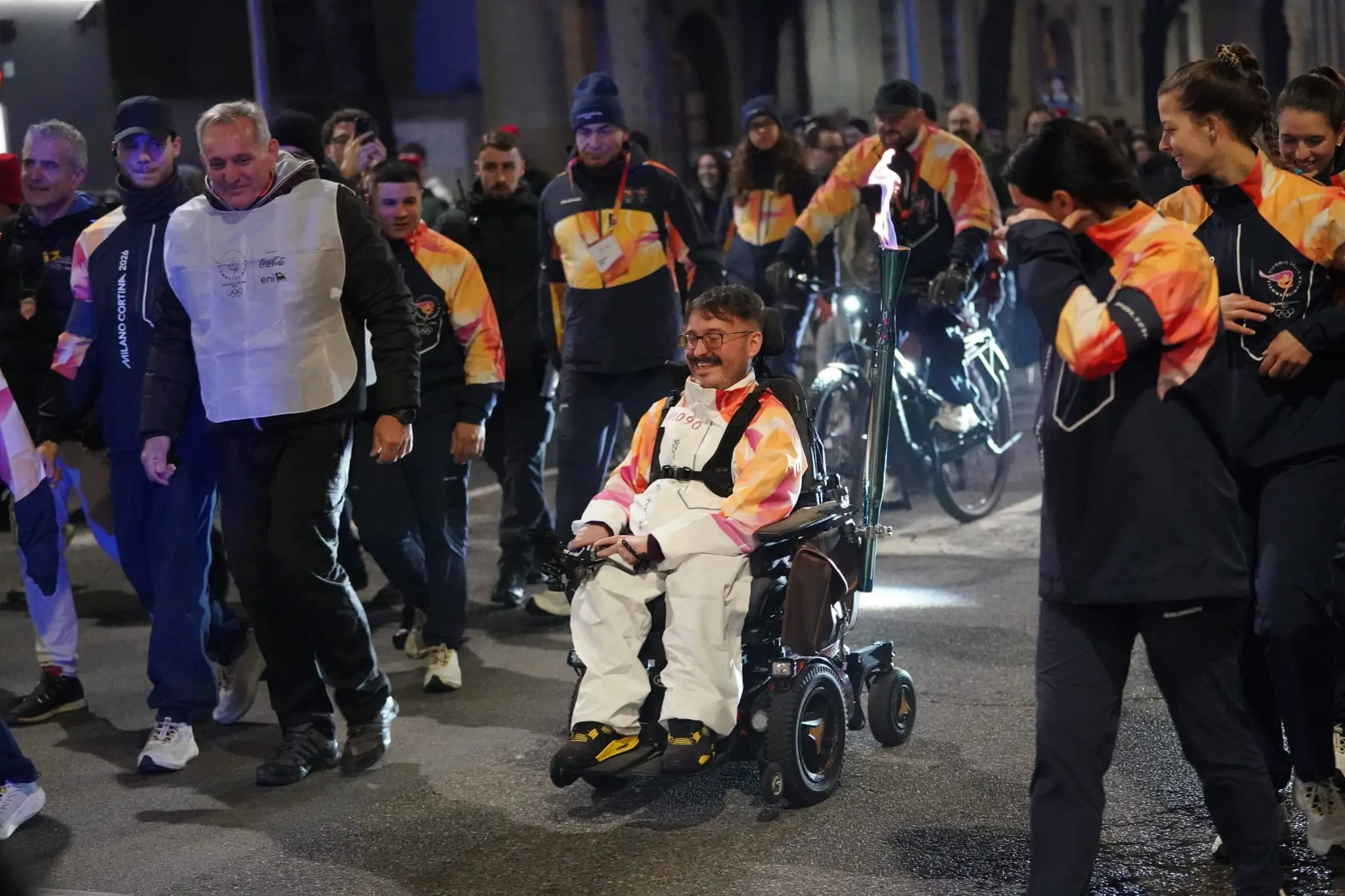 Anche Simone Pedersoli, influencer affetto da atrofia muscolare spinale, ha portato la Fiamma olimpica in città.