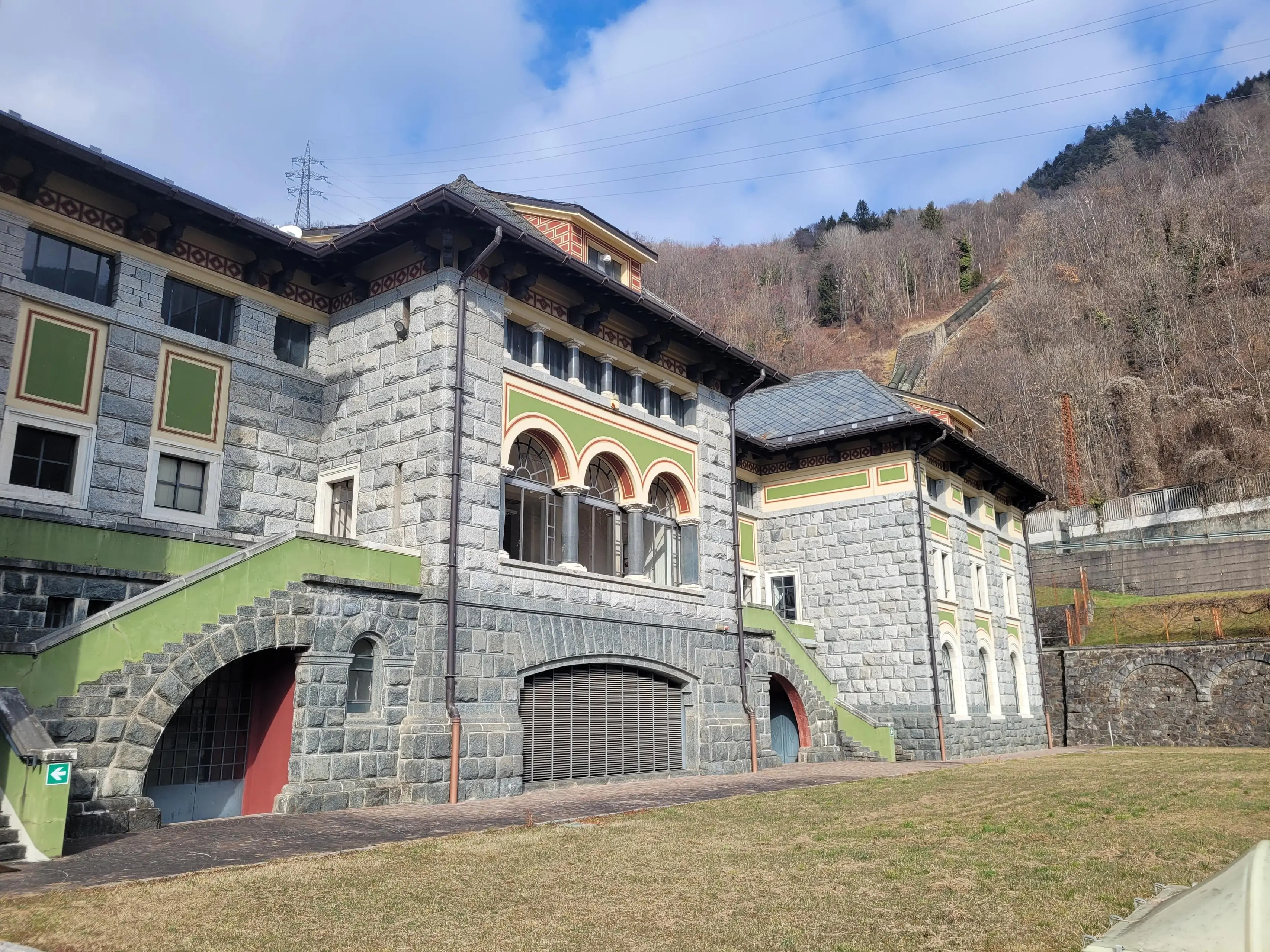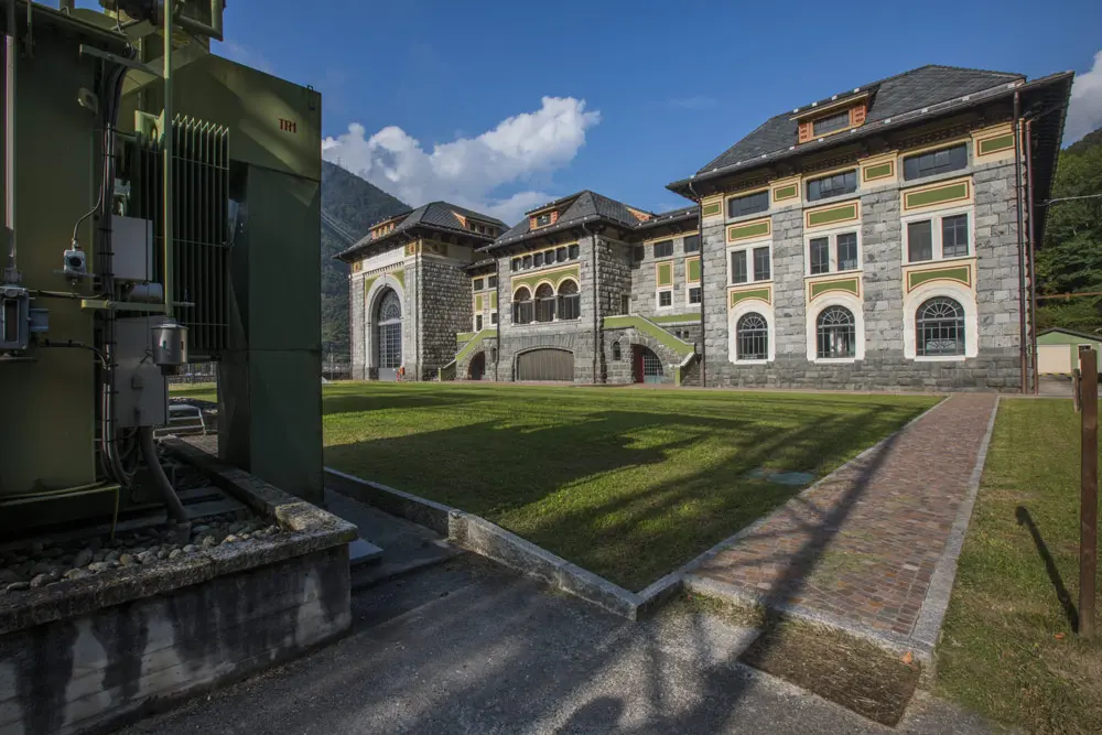 Nella sala delle turbine sopravvivono alcune delle storiche Pelton, in funzione dal 1928 fin quasi al 2010, mentre protette all’interno di sale metalliche color panna che si fondono con le pareti lavorano le due moderne e potenti turbine. All’esterno, la facciata verso nord custodisce volutamente i segni delle mitragliate della seconda guerra mondiale, come cicatrici delle epoche vissute.