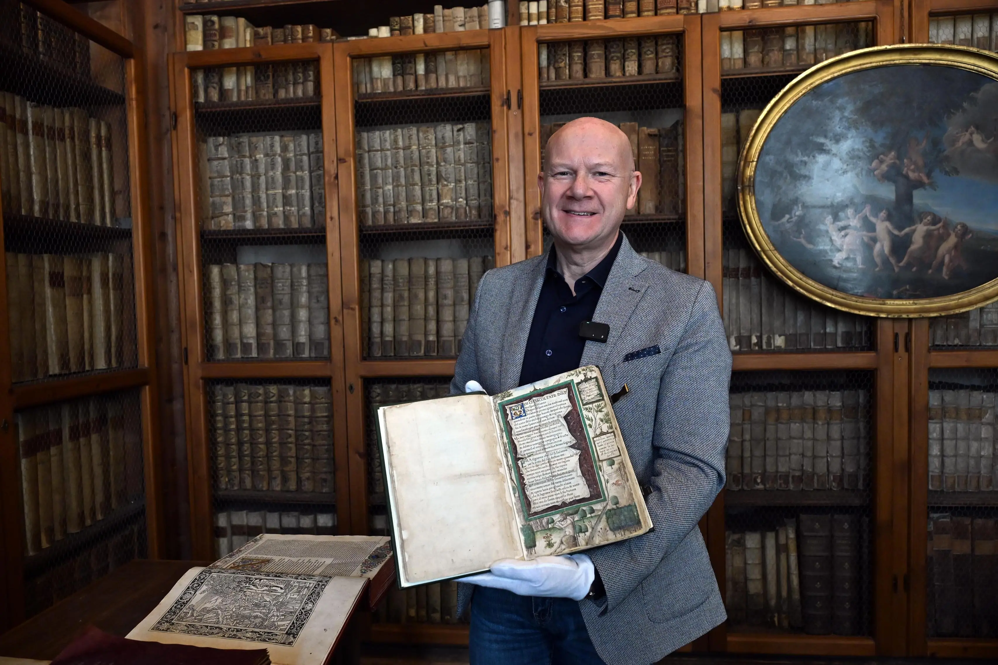 - Nel caveau della Queriniana ci sono 4 libri antichi preziosissimi: Tra i tesori della biblioteca bresciana ci sono un evangeliario color vinaccia e la prima edizione a stampa della Commedia di Dante, ma anche un Canzoniere illustrato e un evangelistario.