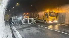 Incidente nella galleria Trentapassi lungo la Sp510, auto in fiamme
